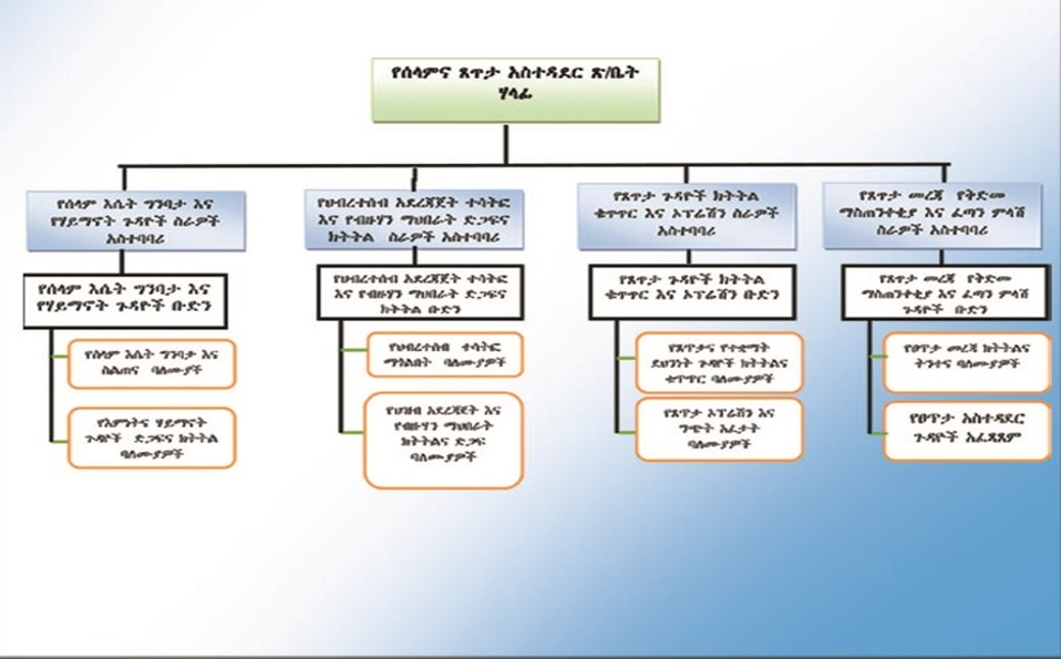 በአዲስ ከተማ ክፍለ ከተማ የሰላምና ጸጥታ አስተዳደር ጽ/ቤት አጠቃላይ መዋቅራዊ አደረጃጀት